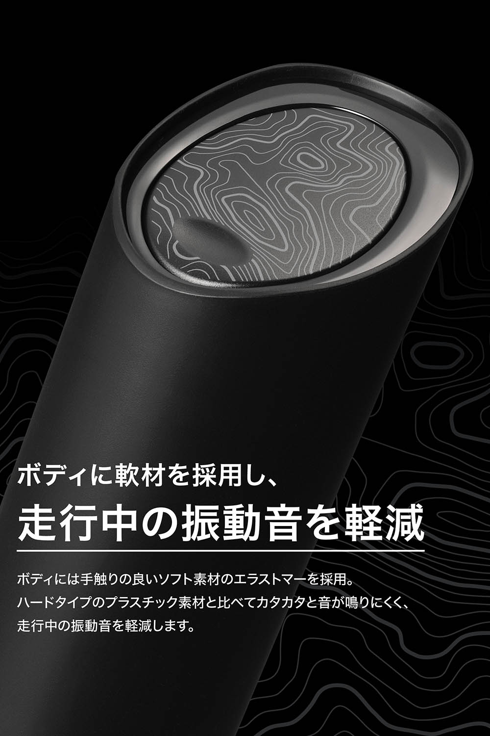 ・ハードタイプのプラスチック素材と比べてカタカタと音が鳴りにくく、走行中の振動音を軽減します。