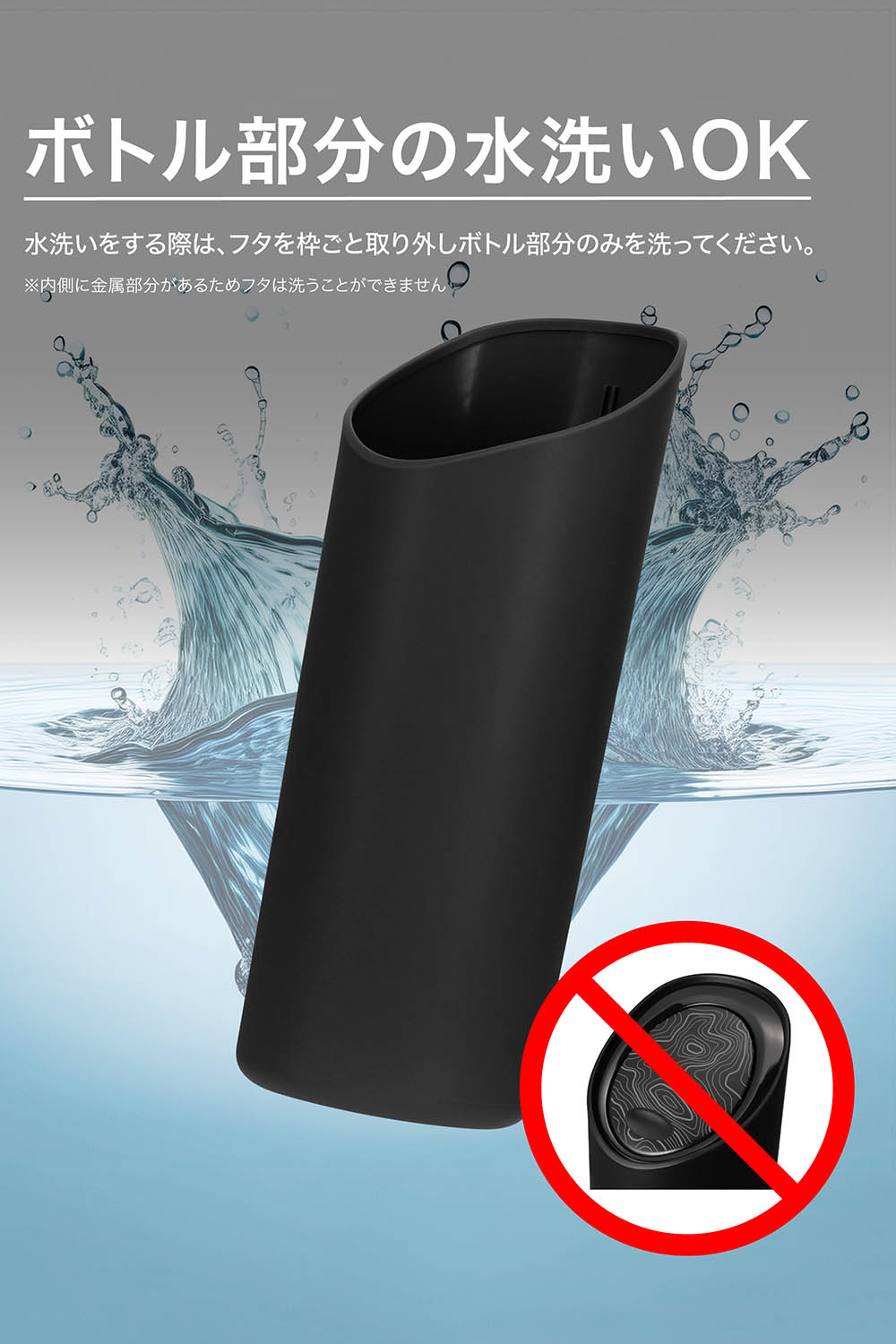 ・水洗いをする際は、フタを枠ごと取り外しボトル部分のみを洗ってください。