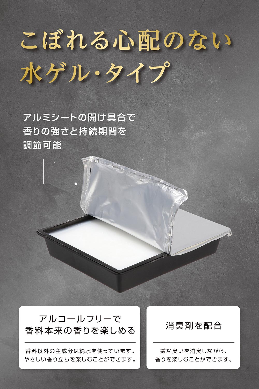 こぼれず、香り立ちが良い水ゲルタイプ