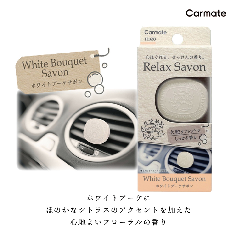 車 芳香剤 エアコン ホワイトブーケ サボン H1683 リラックスサボン クリップ エアコン取付 車用芳香剤 芳香剤 サボン 消臭剤 配合 カーメイト carmate