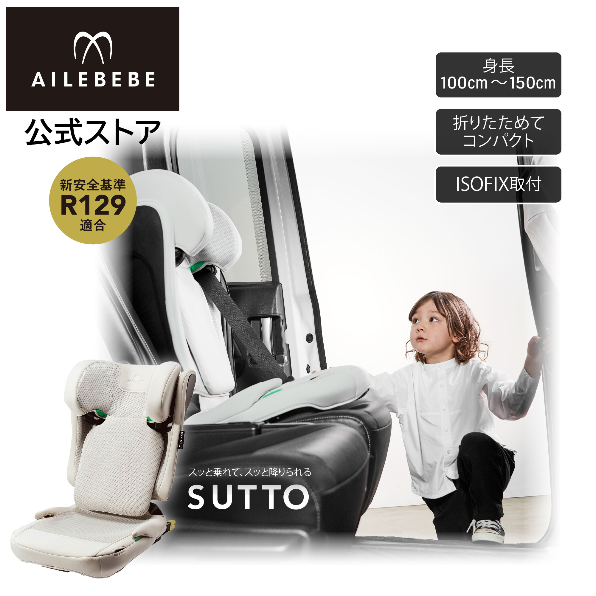 エールべべ ジュニアシート 3歳 isofix JF211 エールベベ スット コンパクト 折りたためる 高さ調節可能 軽量6.7kg オフホワイト 取り付け簡単 カップホルダー付 3年間の製品ロング保証付き 洗濯機OK 3歳から 12歳頃まで UN(ECE)R129/04 適合品 すっと ailebebe carmate