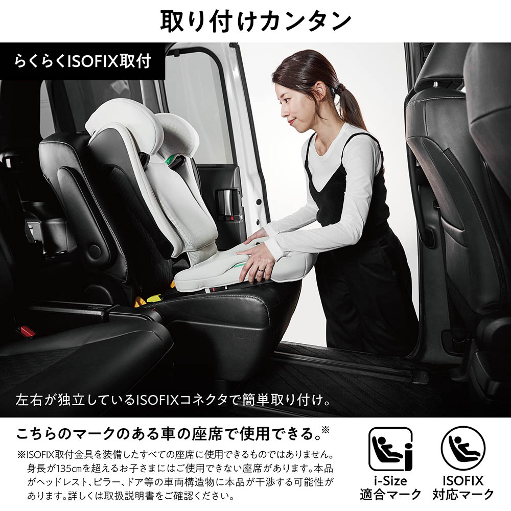 左右が独立しているISOFIXコネクタで簡単・確実な取り付け。