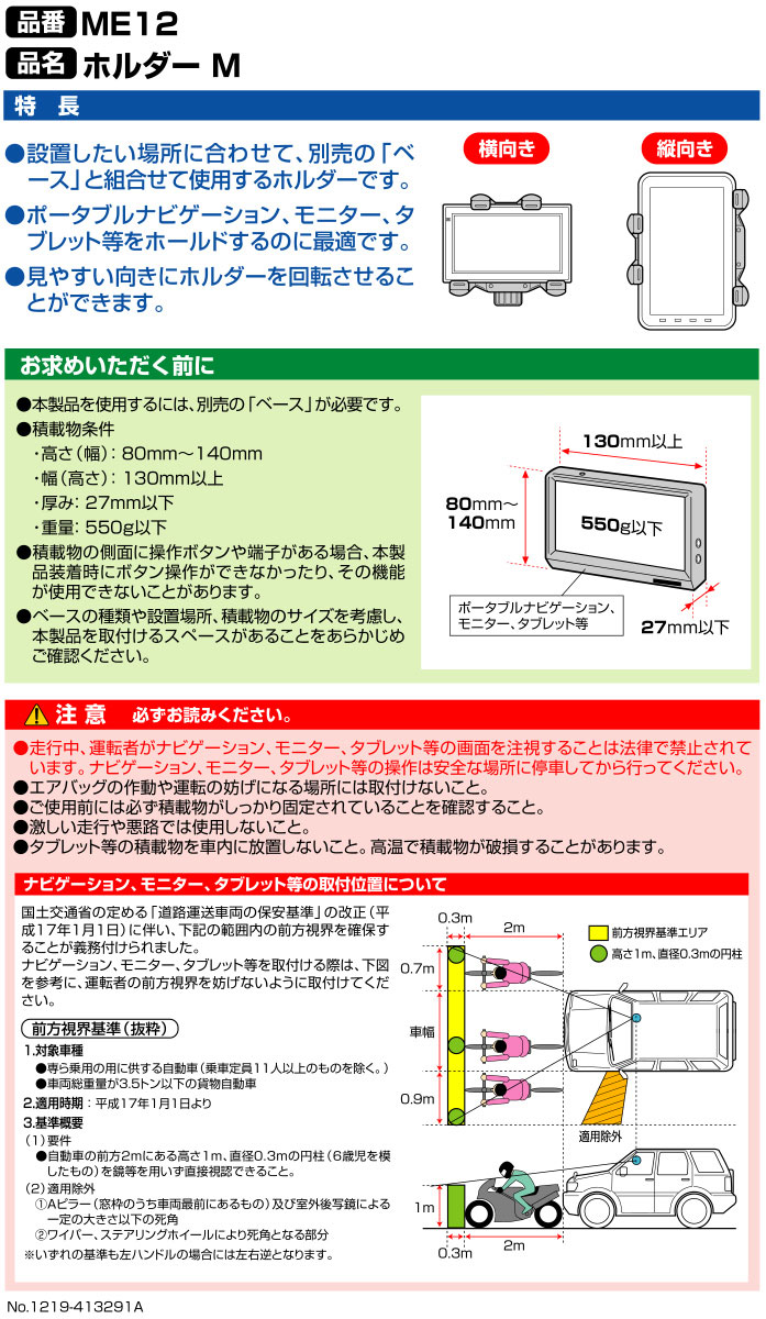 ・ポータブルナビゲーション、モニター、タブレット等をホールドするのに最適です。