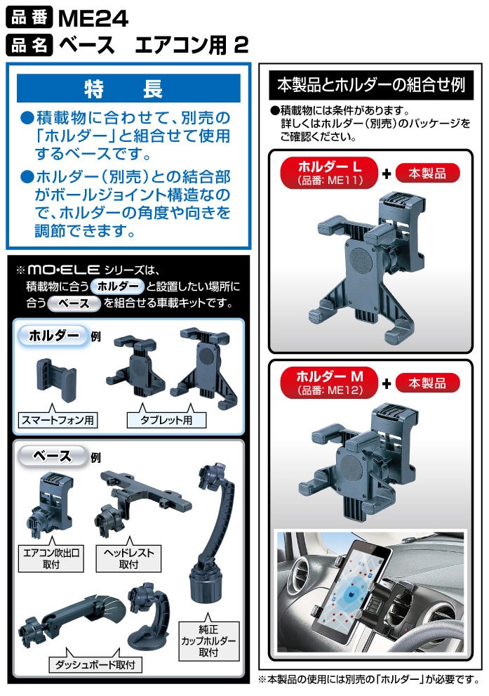 ・積載物に合わせて、別売の「ホルダー」と組合わせて使用するベースです。