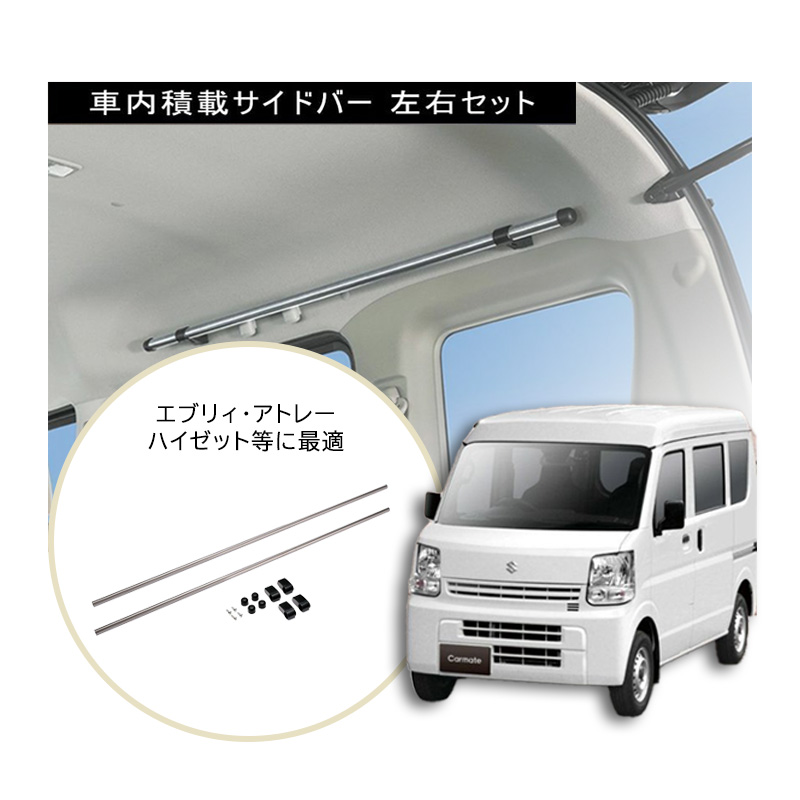 新型エブリィ/アトレー/バモスホビオに適合したサイドバー。最適な120cmサイズのバー採用。車体にあるネジ穴(ユーティリティナット)を利用して取付ける為、簡単にガッチリ固定できます。