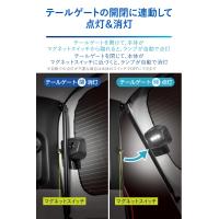製品本体が車両に取り付けたマグネットスイッチから離れるとライトが自動で点灯するので、 テールゲートの開閉だけで室内を照らすことができます。本体のスイッチをONにしたまま テールゲートを閉じるとマグネットスイッチによって自動でランプが消灯します。