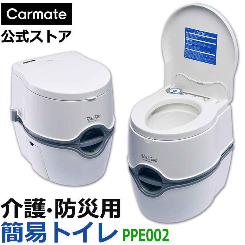 電動ポンプ式のポータブル水洗トイレ。ボタンを押すと水が流れます。