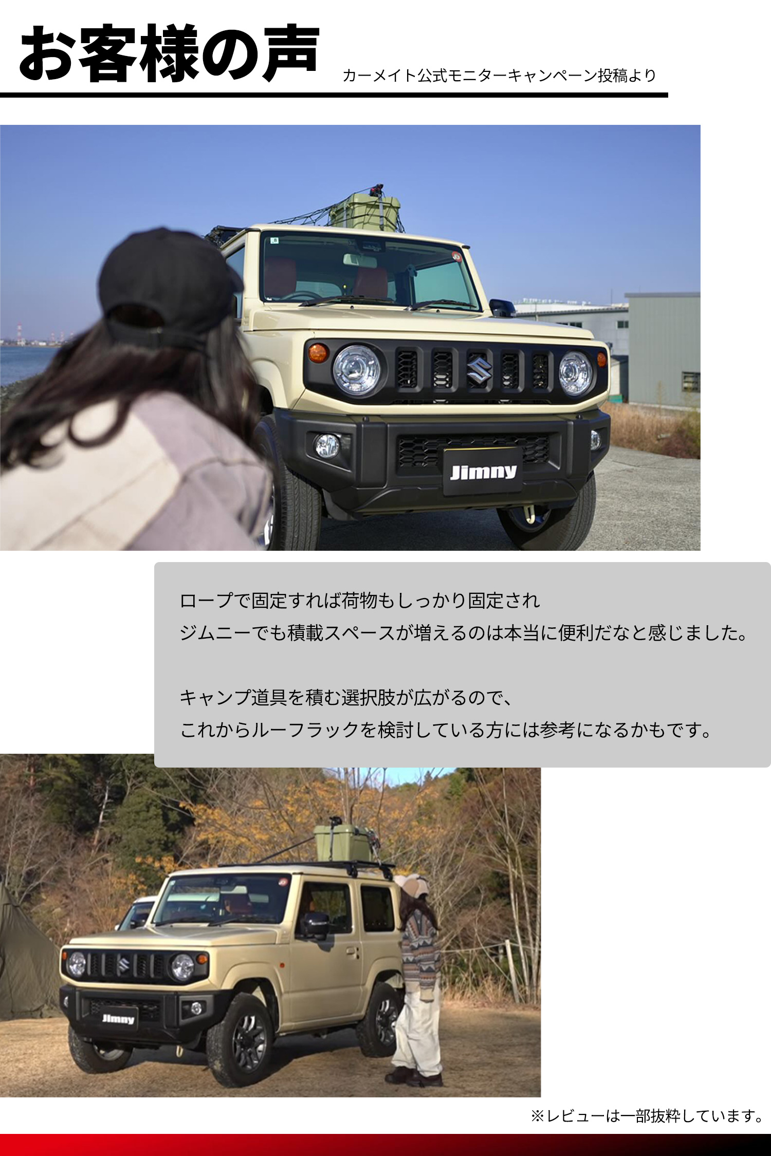 ジムニーの走行性能を損なわずに積載スペースを拡張したい方に最適です。