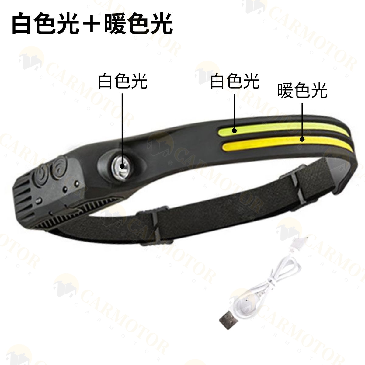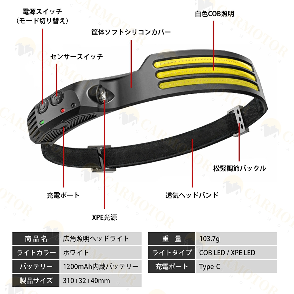 センサー機能付き・点灯モードも最大10種(白+黄+赤の場合)と豊富で、軽いのに頼りになる多機能ヘッドライトです!