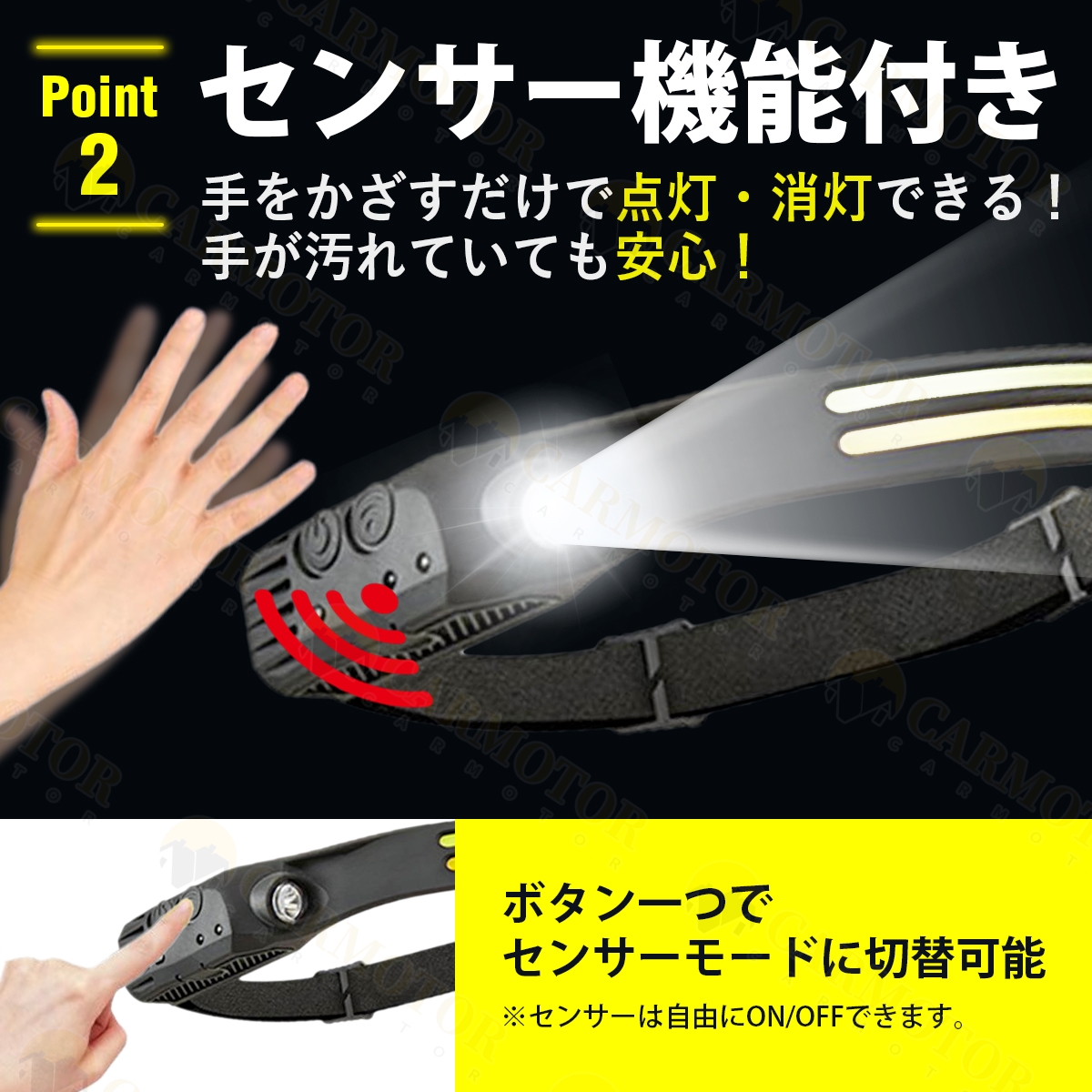 ●センサーでON/OFFが可能なので、手が汚れる作業でも安心!