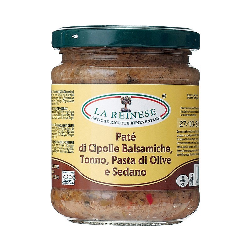 おいしい野菜の産地として知られる南イタリア、カンパーニア州サンニオ地方で作られる野菜のパテ。バルサミコ風味のタマネギとセロリにツナの旨みとオリーブペーストのコクを加え、唐辛子でアクセントを効かせました。