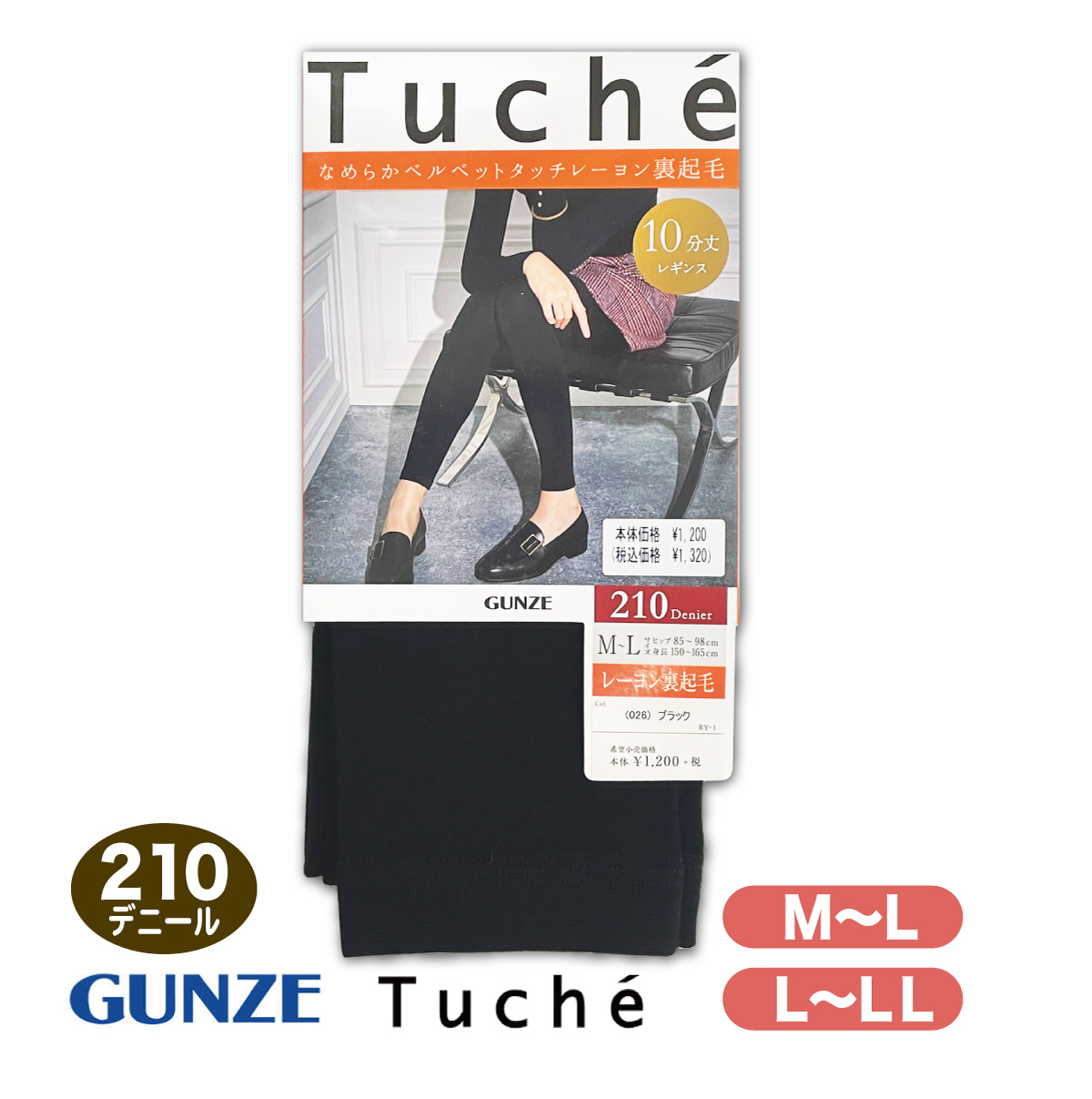 グンゼ 210デニール 10分丈レギンス 黒 ブラック M L LL Tuche トゥシェ あたたか 厚手 防寒 メール便対応