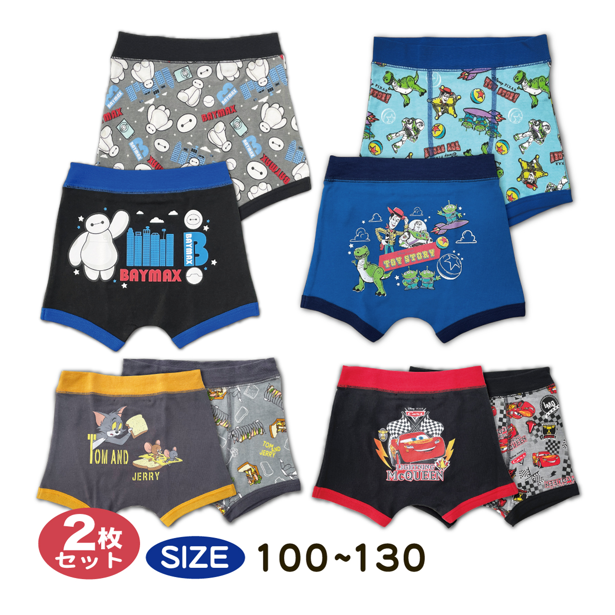 男児 キッズ ボクサーパンツ 2枚組 トムとジェリー ベイマックス カーズ トイストーリー 子供 肌着 インナー パンツ 100 110 120 130 メール便