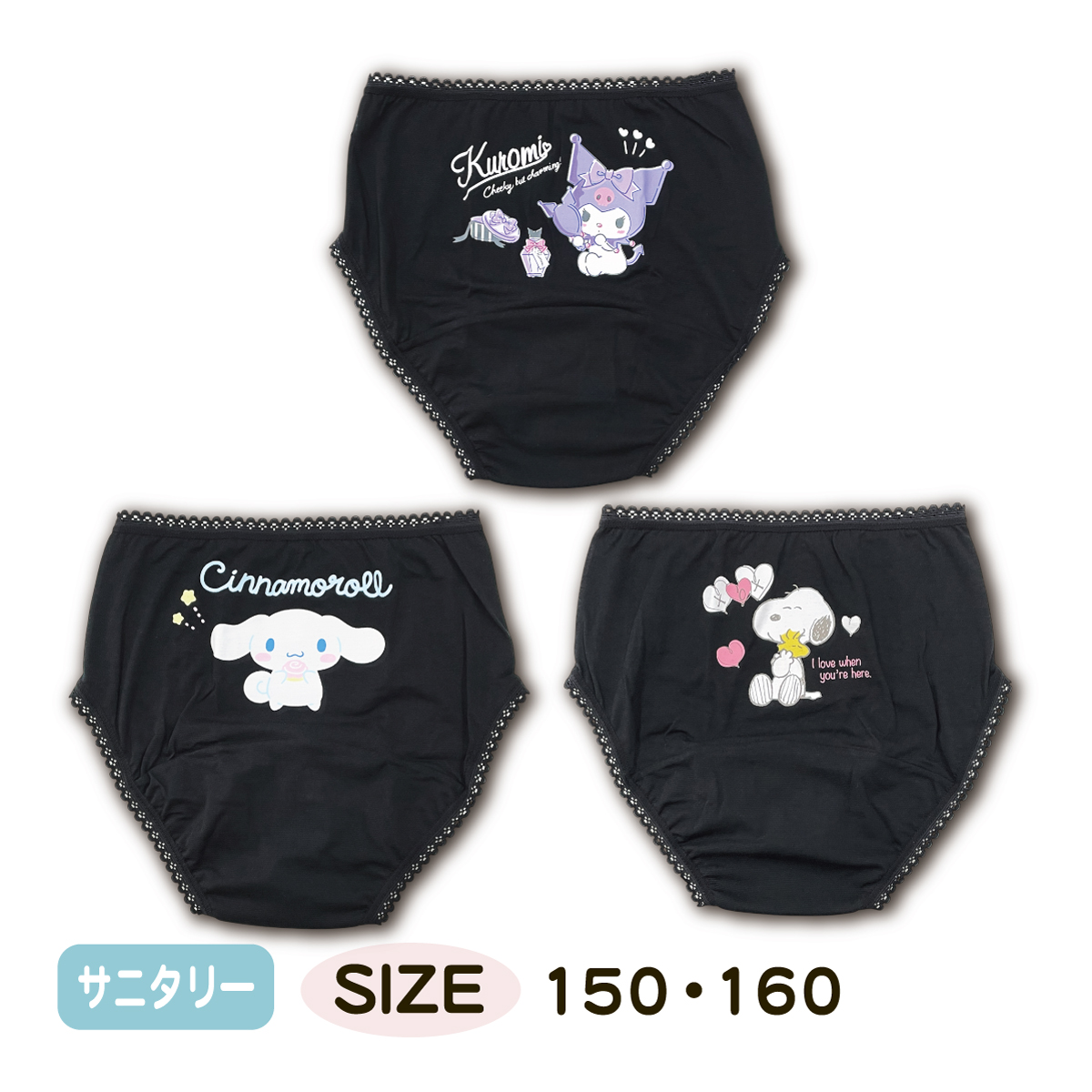 ジュニア サニタリーショーツ 女児 ブラック 黒 クロミ シナモロール スヌーピー 生理用ショーツ 肌着 インナー 女の子 150 160 キッズ ニシオ メール便