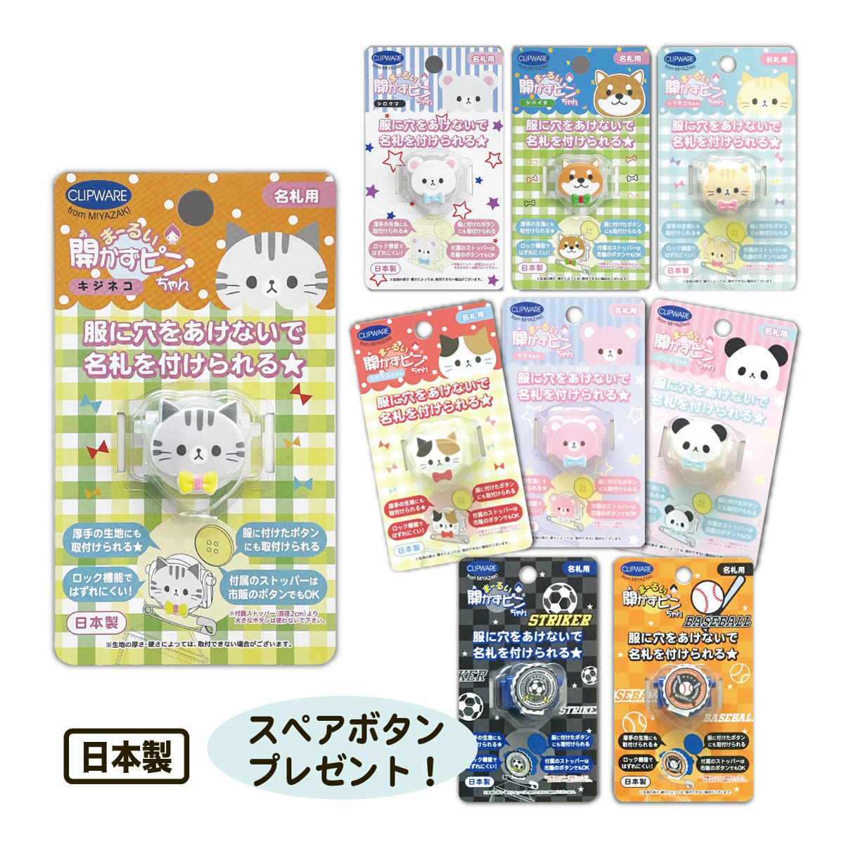 ●安全ピンの代わりに、名札を服に留めるための製品です。