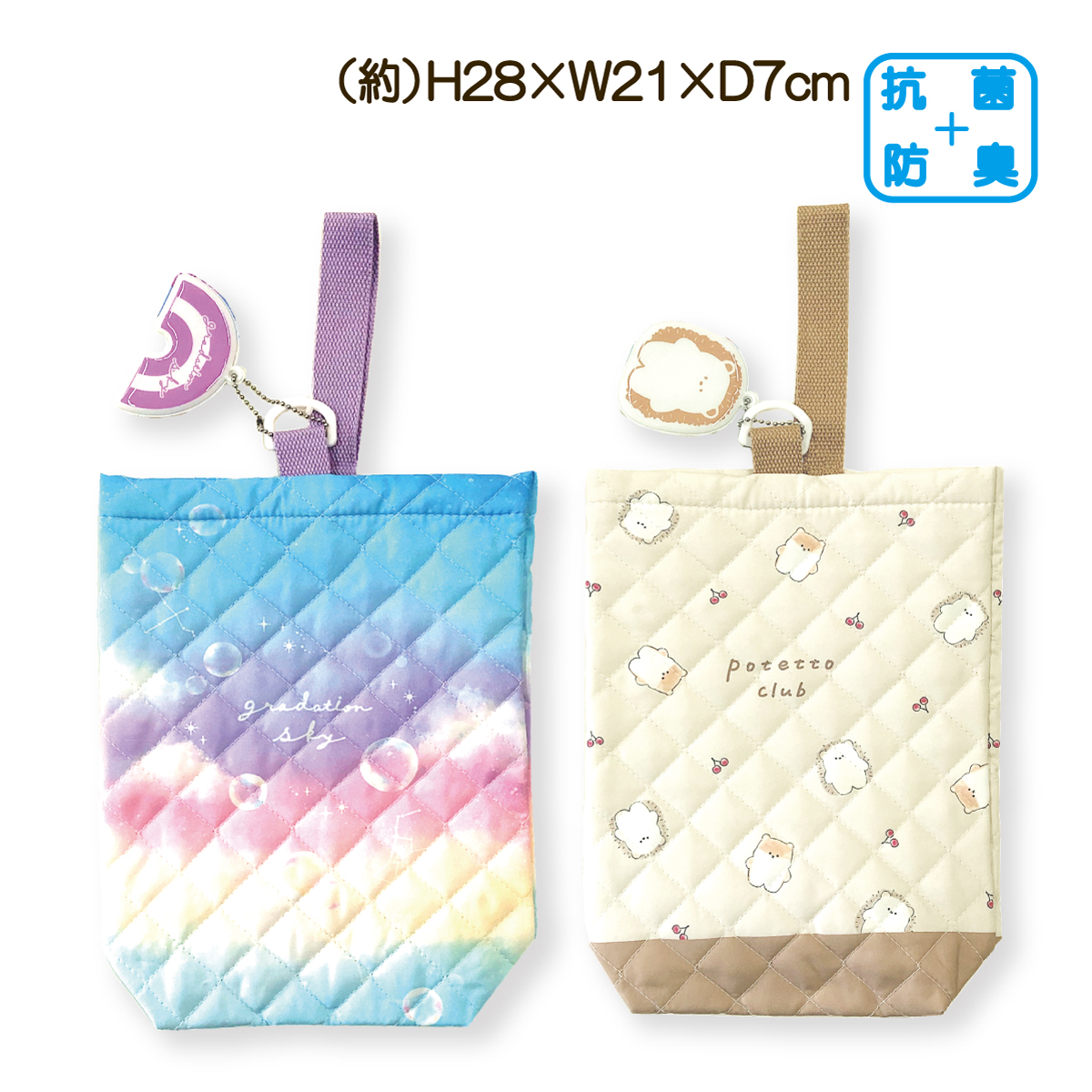 シューズバッグ キルト グラデーション ポテットクラブ 抗菌防臭加工 ネームホルダー付き かわいい 女の子 小学校 幼稚園 通園 入園 入学 メール便