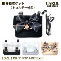 移動ポケット ワイドポシェットポケット メタルバッグル付き メタルチャーム付き バッグ風 チェックリボン マスク入れ ポシェット ブラック ベージュ 幼稚園 保育園 小学校 メール便 キャロル