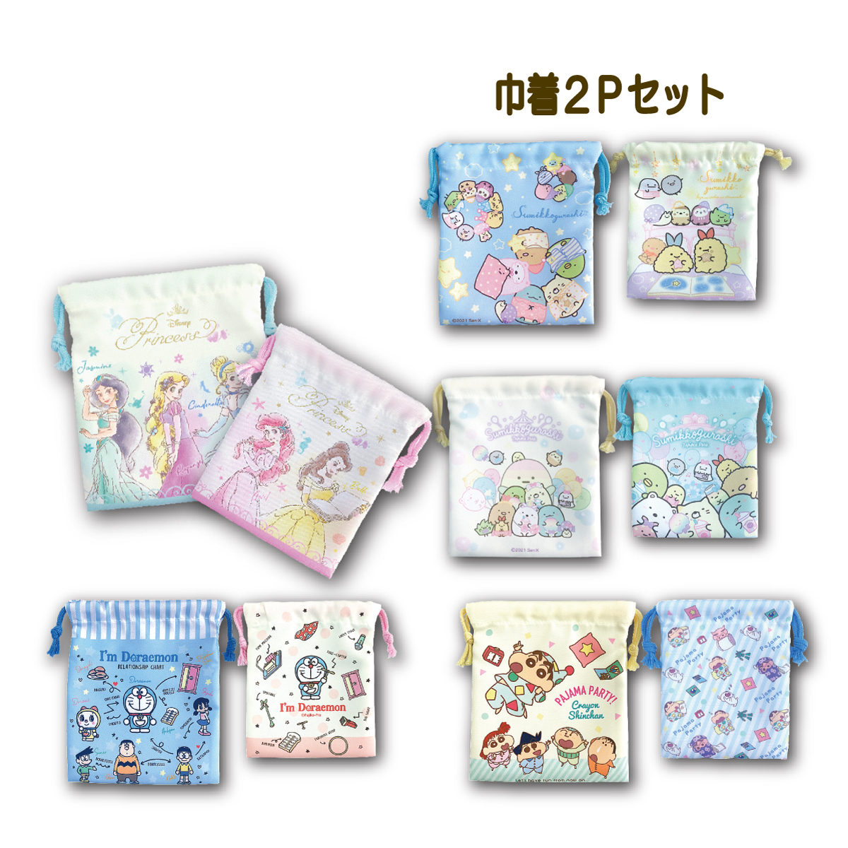 【巾着】発色がキレイ!キャラクター巾着袋2枚入り。【メール便対応】