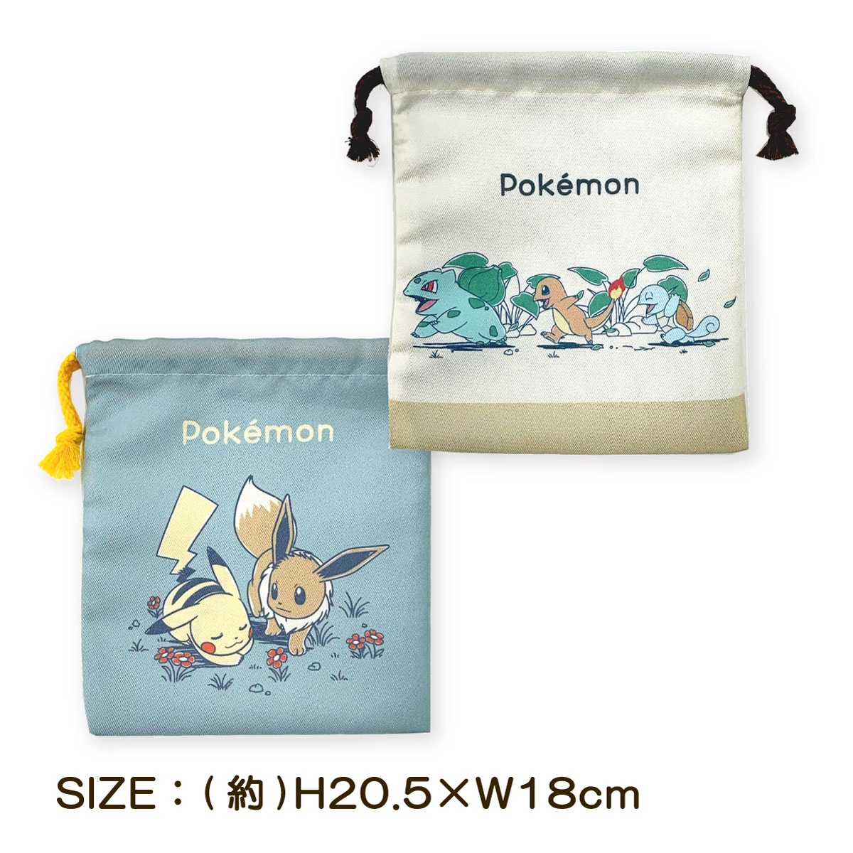 巾着 巾着袋 給食袋 ポケモン ポケットモンスター ピカチュウ イーブイ 給食 ランチ お弁当 学生 シワになりにくい ポリエステル メール便