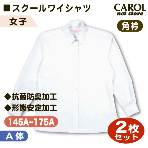 スクールワイシャツ スクールYシャツ スクールシャツ SCHOOL SHIRT 女子 A体 角衿 抗菌防臭加工 においを防ぐ 形態安定加工 トップヒューズ芯 長袖 綿 145A 150A 155A 160A 165A 170A 175A 2枚セット 2枚組 キャロル