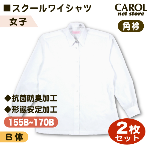 スクールワイシャツ スクールYシャツ スクールシャツ SCHOOL SHIRT 女子 B体 角衿 抗菌防臭加工 においを防ぐ 形態安定加工 トップヒューズ芯 長袖 綿 150B 155B 160B 165B 170B 2枚組 2枚セット キャロル