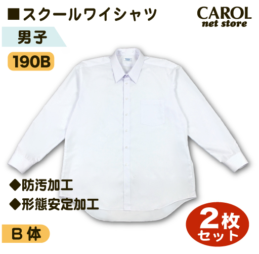 スクールワイシャツ スクールYシャツ スクールシャツ SCHOOL SHIRT 男子 B体 角衿 防汚加工 汚れが落ちやすい 形態安定加工 長袖 綿 190B 2枚組 2枚セット キャロル