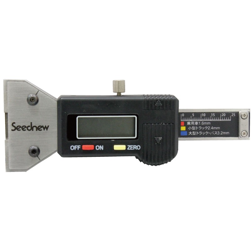 ●ステンレス鋼の丈夫なボディ●デジタルとアナログ兼用デプスゲージです。●タイヤ溝測定に便利な基準値を表示しています。●オートパワーオン/オートパワーオフ測定範囲:0〜25mm最低目盛:0.1mm制 度:±0.05mm質 量:130g電池の種類:LR44×1個