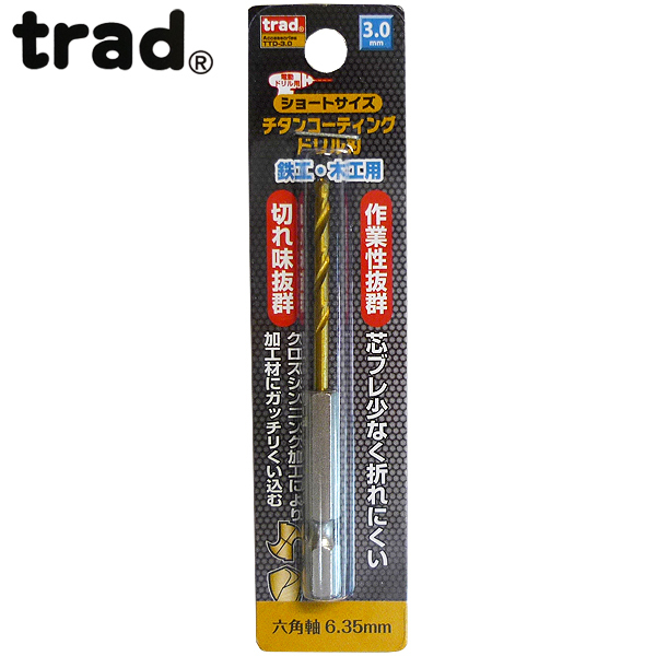 trad 六角軸ショートチタンドリル3.0mm TTD-3.0 (金属・金工)