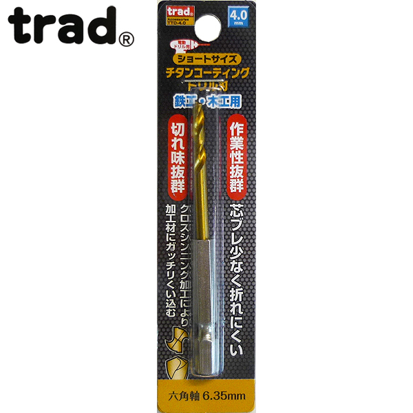 trad 六角軸ショートチタンドリル4.0mm TTD-4.0 (金属・金工)