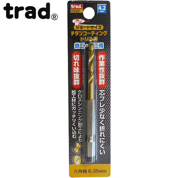 trad 六角軸ショートチタンドリル4.2mm TTD-4.2 (金属・金工)