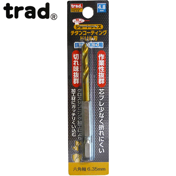 trad 六角軸ショートチタンドリル4.8mm TTD-4.8 (金属・金工)