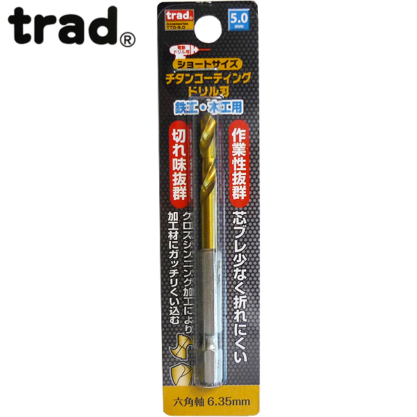 trad 六角軸ショートチタンドリル5.0mm TTD-5.0 (金属・金工)
