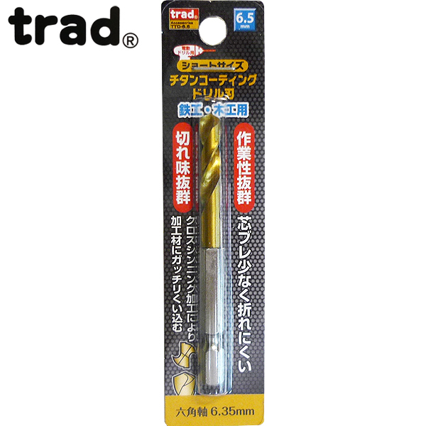 trad 六角軸ショートチタンドリル6.5mm TTD-6.5 (金属・金工)