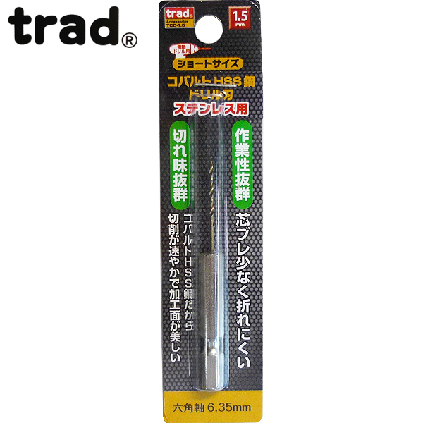 trad 六角軸ショートコバルトドリル1.5mm TCD-1.5 (金属・金工)