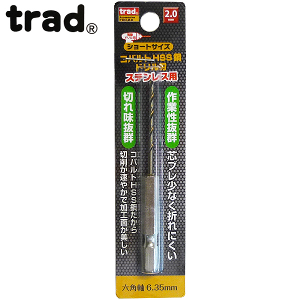 trad 六角軸ショートコバルトドリル2.0mm TCD-2.0 (金属・金工)