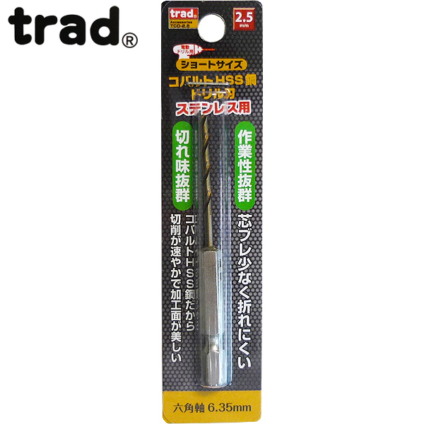 trad 六角軸ショートコバルトドリル2.5mm TCD-2.5 (金属・金工)