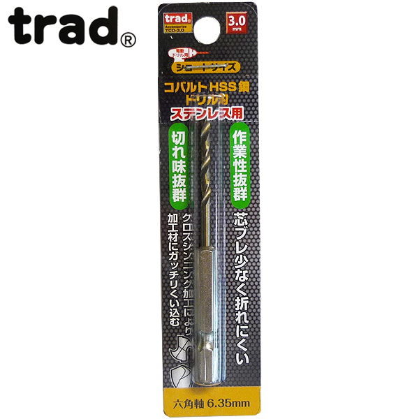 trad 六角軸ショートコバルトドリル3.0mm TCD-3.0 (金属・金工)