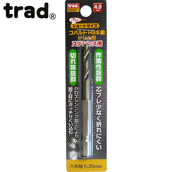 trad 六角軸ショートコバルトドリル4.0mm TCD-4.0 (金属・金工)