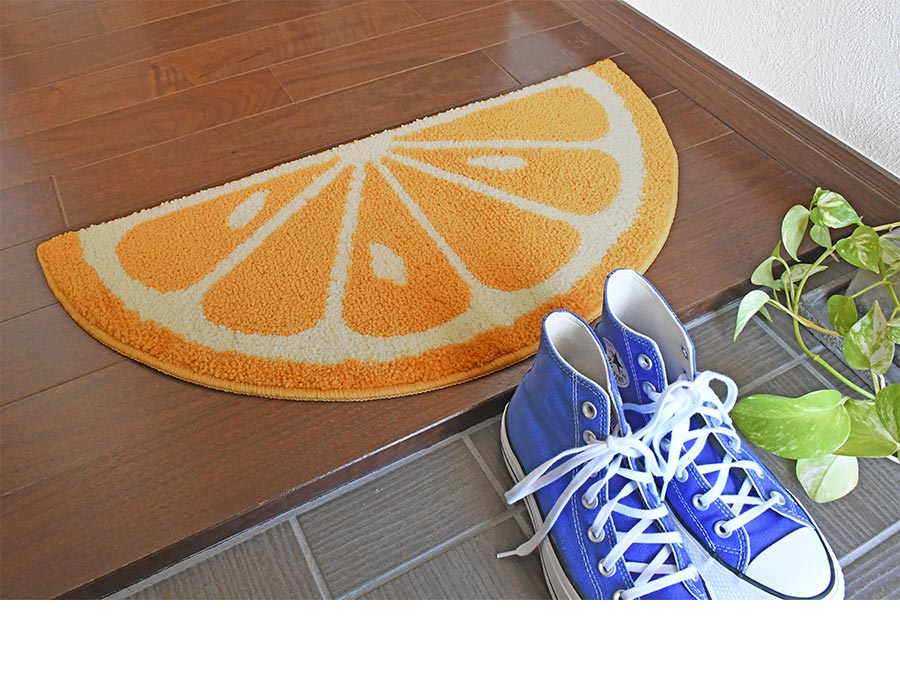 玄関マット オレンジ 35×70 cm 洗える 滑り止め 変形 デザイン マット 送料無料