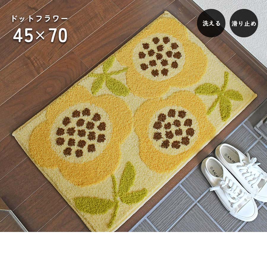 玄関マット ドットフラワー 45×70 cm 洗える 滑り止め 北欧 フラワー デザイン 送料無料