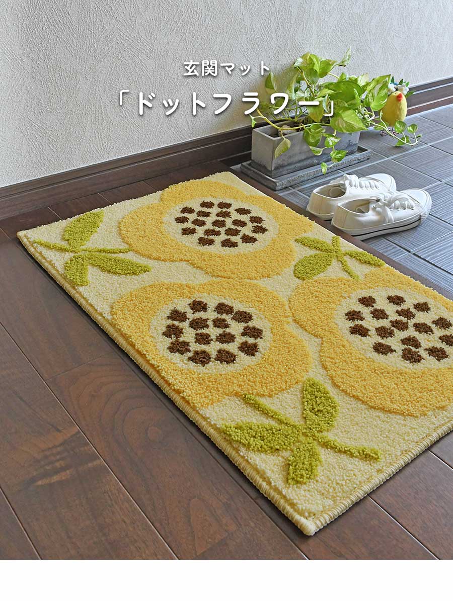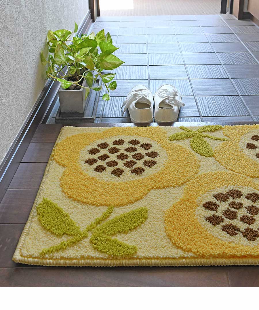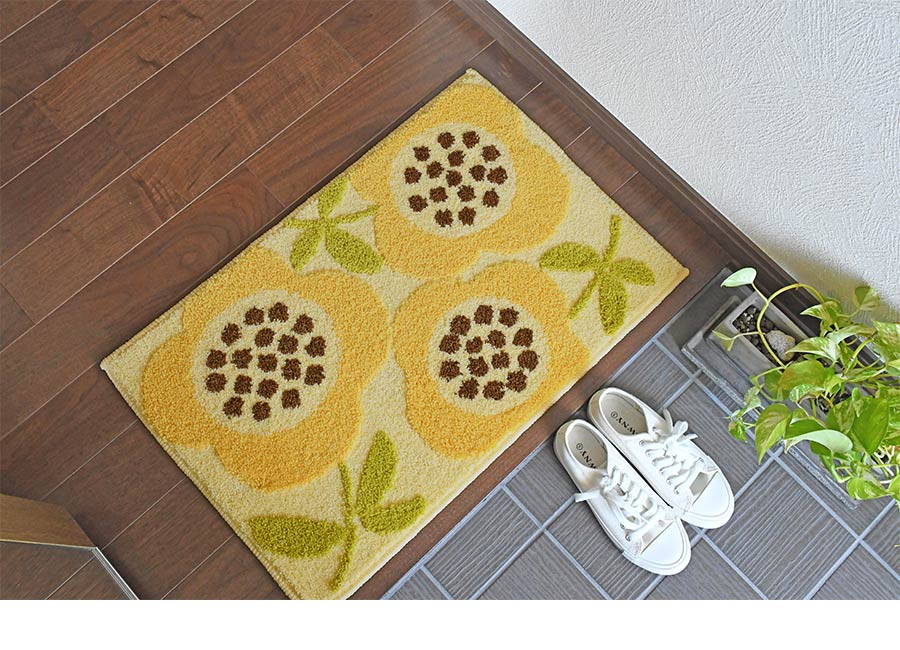 玄関 エントランス マット 玄関マット 洗える 滑り止め 北欧 フラワー イエロー 黄色 風水 おしゃれ お洒落 オシャレ かわいい 可愛い インテリア ISHIBASHI イシバシカーペット カーペットイシバシ