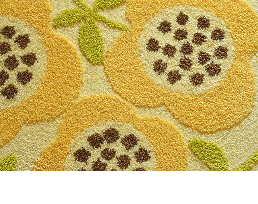 手書き風のデザインで描かれたアート性の高いデザイン。北欧調の伸びやかなフラワーモチーフを、あえて大胆に表現してちょっぴり懐かしい雰囲気に仕上げました。裏面は滑り止め加工付きで洗濯機丸洗いOKのウォッシャブルタイプです。