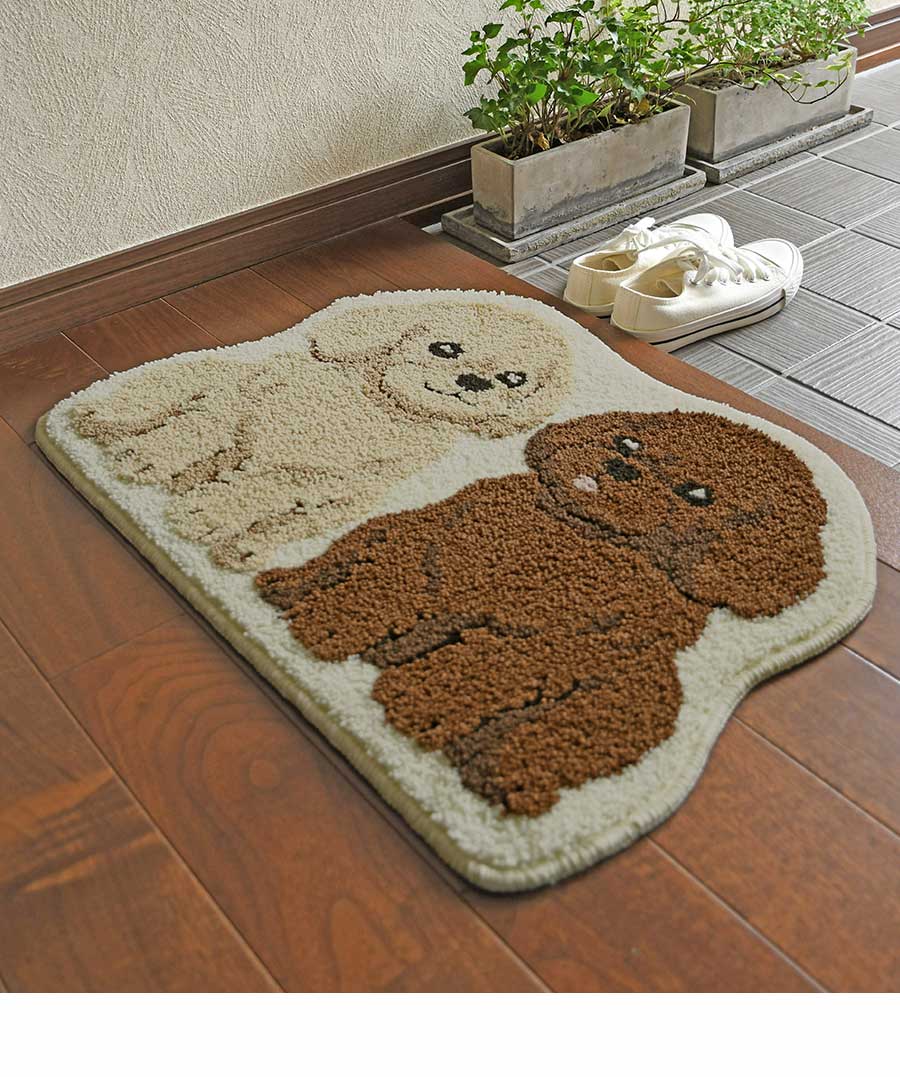 キュートなデザインが人気のアニマルマットシリーズ「ツインプードル」。イヌ好きのかたへのプレゼントにも。玄関マットとしてはもちろん、洗濯機丸洗いOKのウォッシャブルタイプのため、水まわりでのご使用もおすすめです。