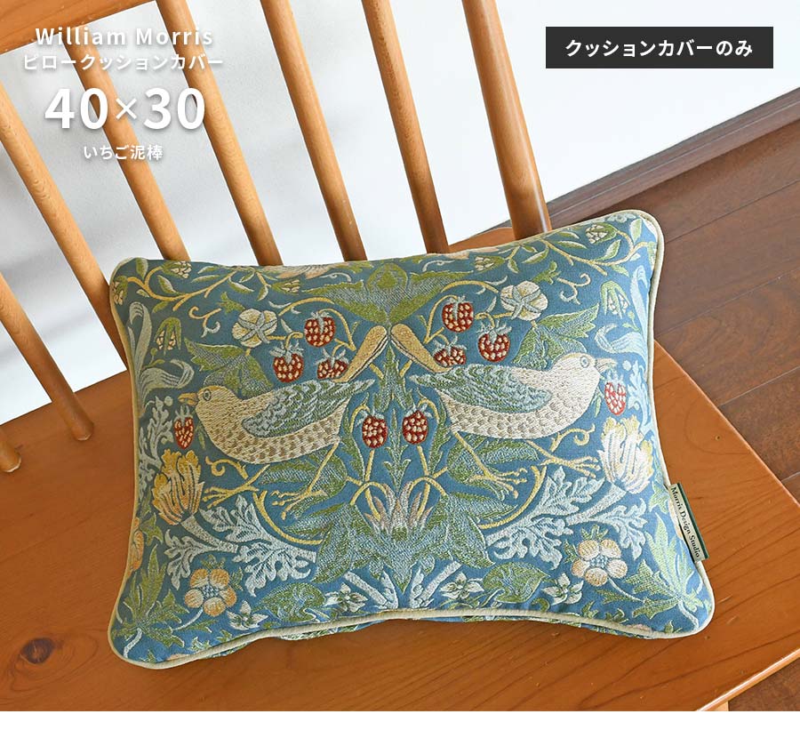 クッション カバー クッションカバー ピロー まくら 枕 ウィリアム モリス William Morris モリスデザインスタジオ いちご イチゴ 苺 鳥 インテリア おしゃれ お洒落 オシャレ ISHIBASHI イシバシカーペット カーペットイシバシ