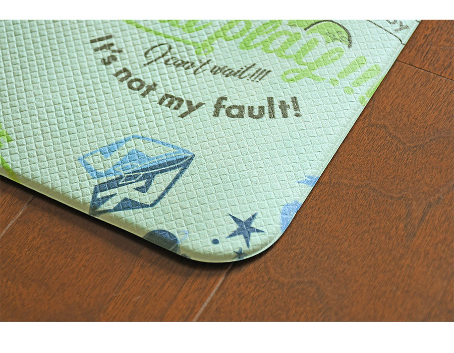汚れてもサッと 拭ける PVCキッチンマット 。水や汚れに強い PVC 製なので、汚れてしまった時もサッと拭き取ることができるので、お手入れはとっても簡単!
