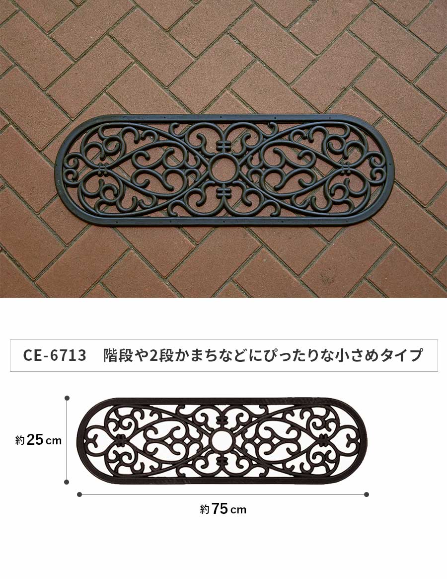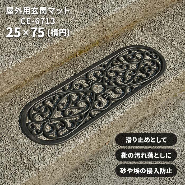 屋外 玄関マット CE-6713 25×75 cm 楕円 オーバル ラバーマット 泥落とし 雪落とし テラス ドア 階段 マット ダマスク 柄 送料無料