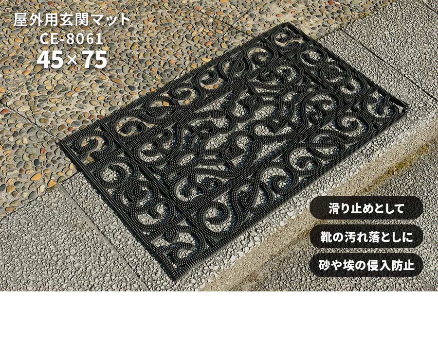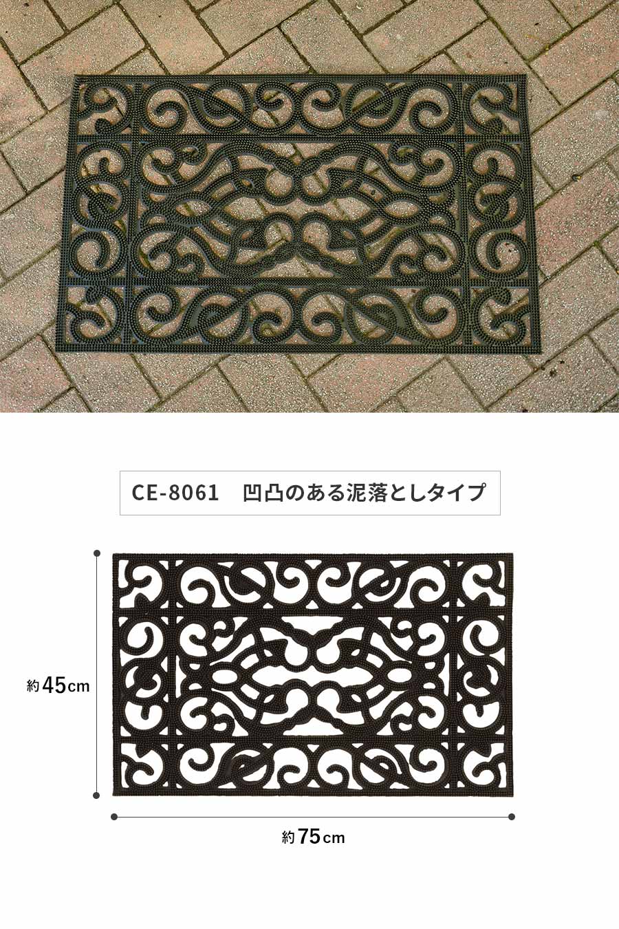 屋外 玄関マット CE-8061 45×75 cm 長方形 ラバーマット 泥落とし 雪落とし テラス ドア マット ダマスク 柄 送料無料