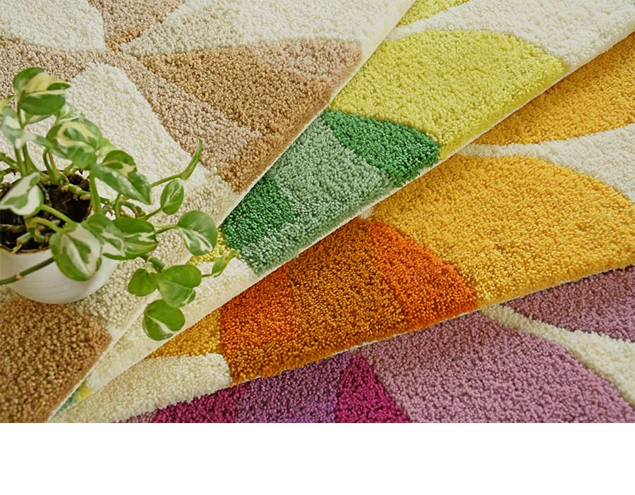 最長約15ミリのカットパイルと打ち込みもよく、足あたりがソフトで踏み心地もふっかふか。丁寧な織りと、美しい表面の仕上がりは国産ならでは。ハイグレードなフックマットです。