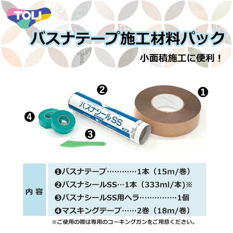東リ バスナテープ施工材料パック 1.バスナテープ 2.バスナシールSS 3.バスナシールSS用ヘラ 4.マスキングテープ 便利な材料パック4点セット