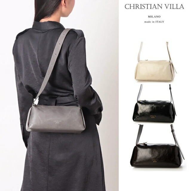 CHRISTIAN VILLA クリスチャンヴィラ ハンド バッグ 2WAY ショルダーバッグ レディース イタリア製 牛革 ブラック レザー